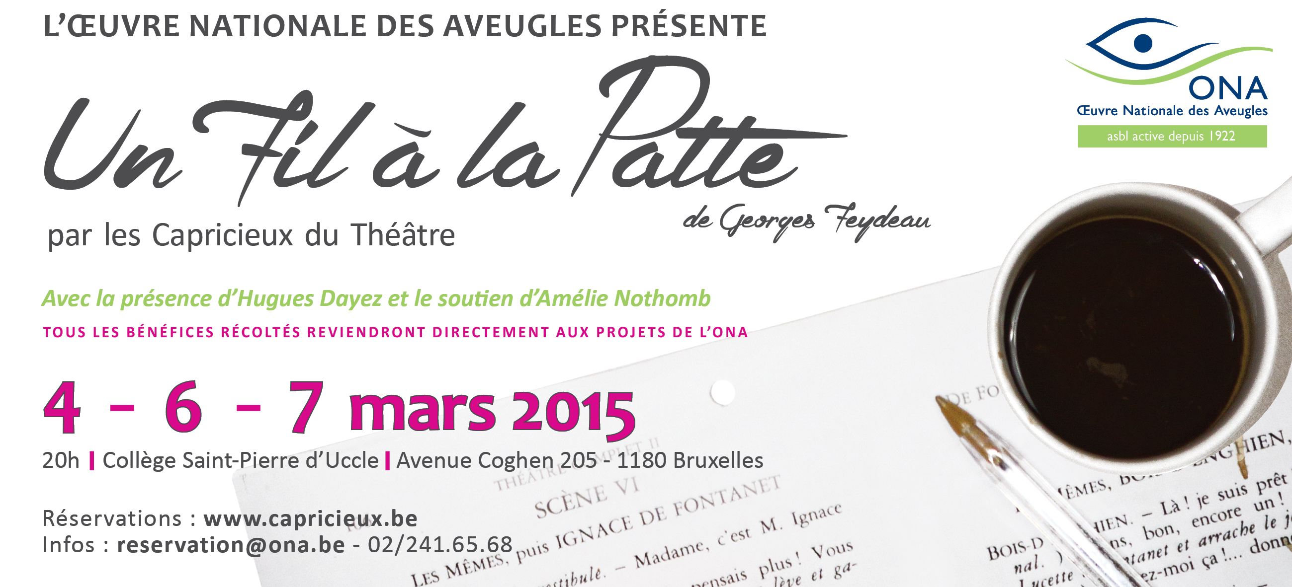 Venez rire pour la bonne cause ! « Un Fil à la Patte » de G. Feydeau, par Les Capricieux du Théâtre Au profit de l’Œuvre Nationale des Aveugles Mercredi 4 mars 2015 – 20h – COMPLET Vendredi 6 mars 2015 – 20h (avec audiodescription) – COMPLET Samedi 7 mars 2015 – 20h Le mercredi 4 mars …