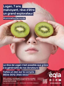 Cet été, Eqla relance la campagne #commetoutlemonde au travers d’affiches en Wallonie et à Bruxelles, une campagne de sensibilisation à la déficience visuelle !