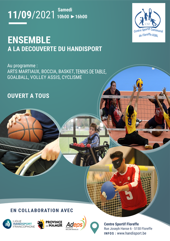 La Ligue Handisport organise une journée d’information et d’initiation aux handisports le 11 septembre 2021, au centre sportif de Floreffe.